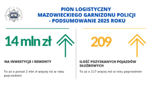 Pion logistyczny w Policji odgrywa kluczową rolę w zapewnieniu płynnego funkcjonowania całej organizacji, wspierając działalność m.in. operacyjną poprzez zarządzanie zasobami, zaopatrzeniem oraz infrastrukturą. Pion logistyczny jest integralną częścią służb wspomagających, obok służb kryminalnych i prewencyjnych. W roku ubiegłym dzięki działaniom „logistyków” mazowiecki garnizon Policji wzbogacił się m.in. o kilkaset nowych samochodów, nowy sprzęt, dzięki któremu policjanci mogą podnosić swoje kwalifikacje.