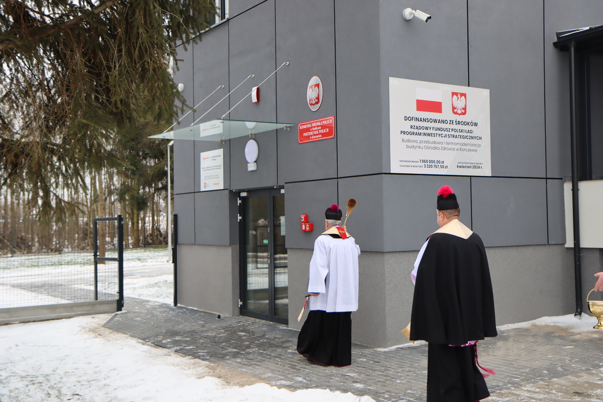 Kolejnym i najważniejszym etapem dzisiejszego wydarzenia było uroczyste przekazanie symbolicznych kluczy do posterunku. Z rąk insp. Pawła Herbusia, Zastępcy Komendanta Wojewódzkiego Policji z siedzibą w Radomiu oraz Wójta Gminy Korczew Sławomira Wasilczuka odebrał je asp. Łukasz Dyrdowski, kierownik PP w Korczewie. Budynek posterunku poświęcili ks. prałat Kazimierz Niemirka, kapelan siedleckich policjantów oraz ks. kanonik Antoni Klukowski.