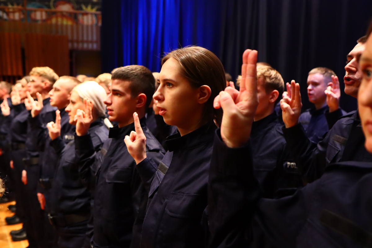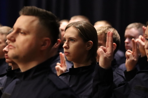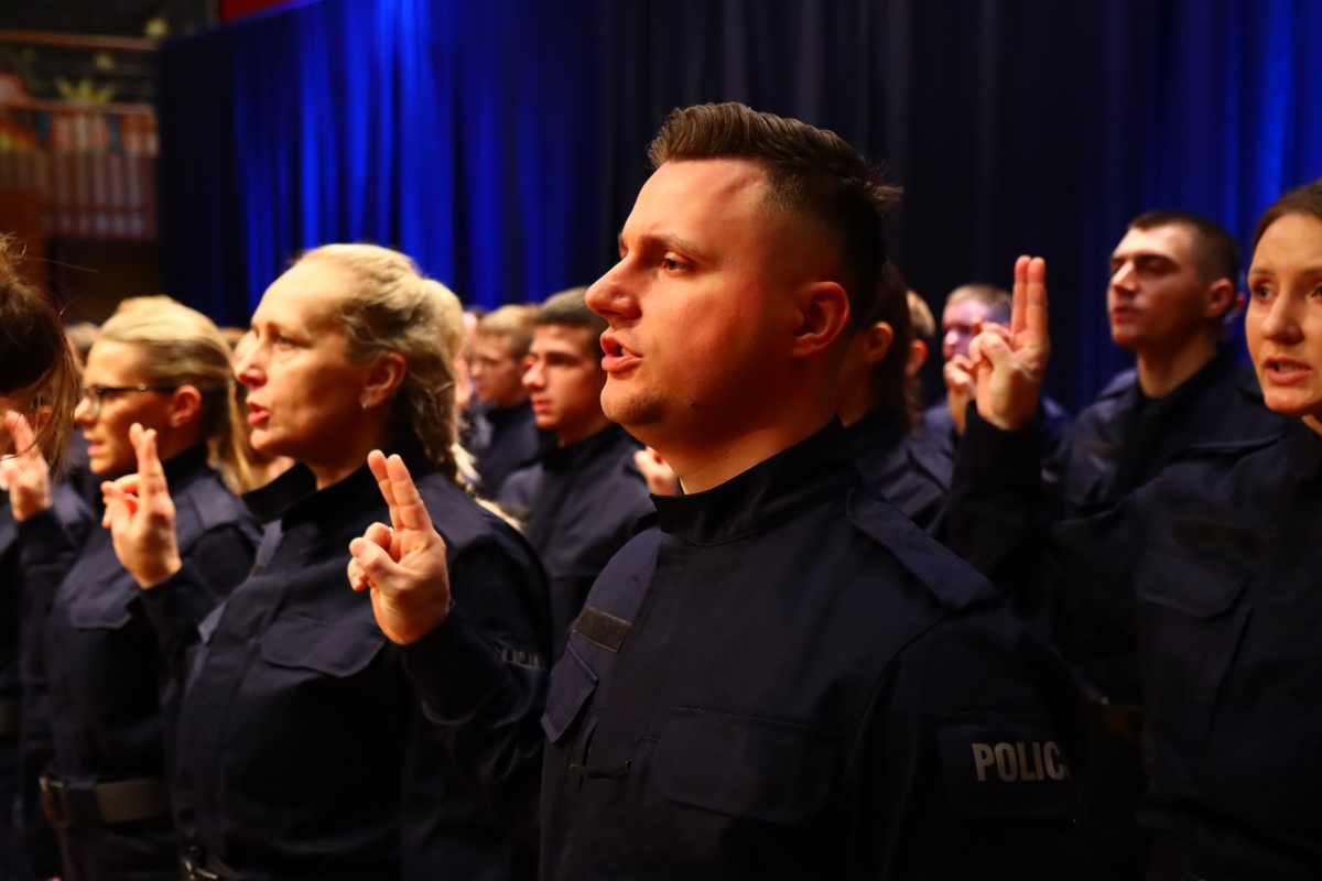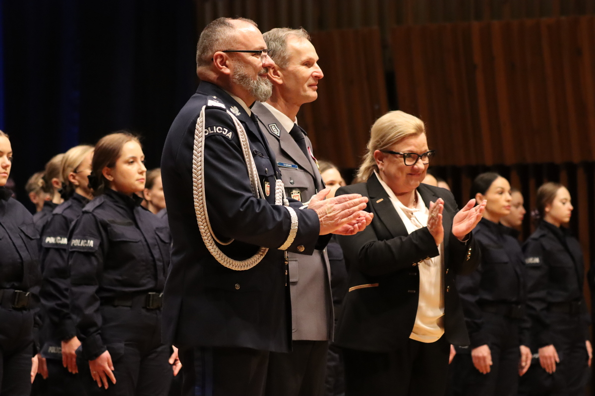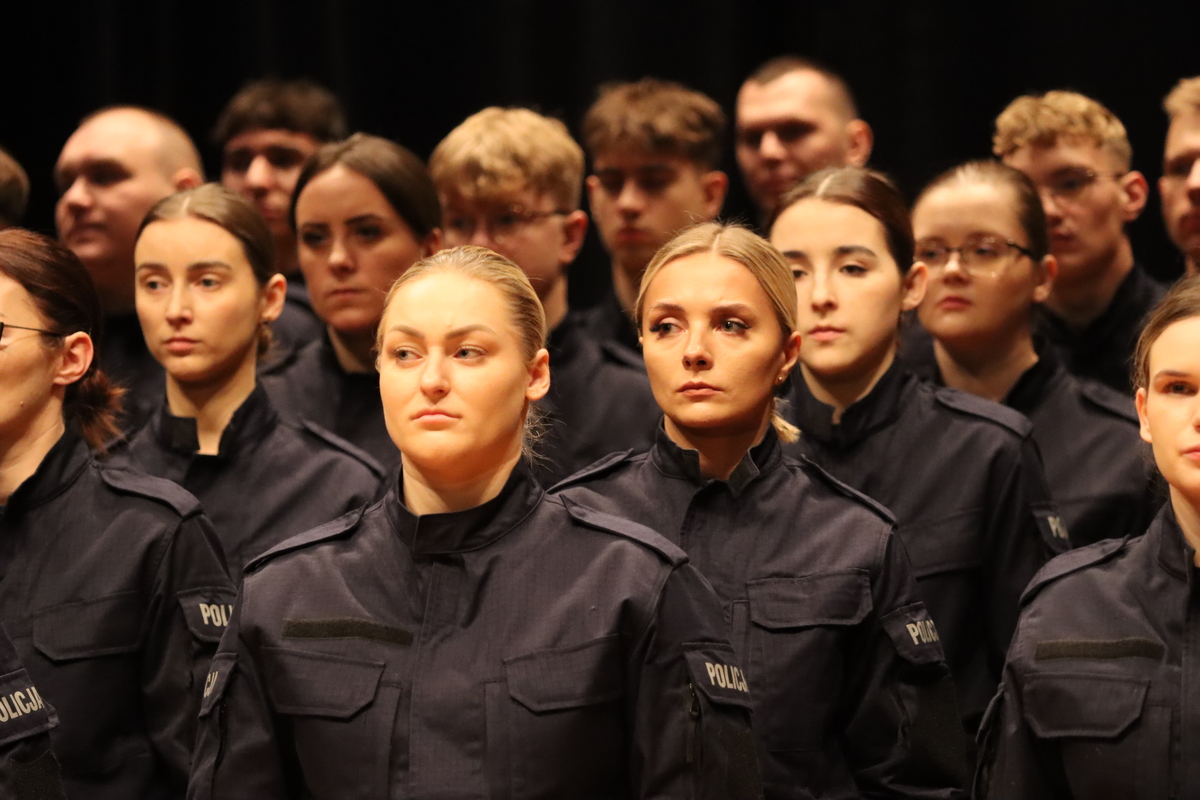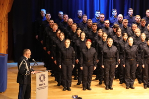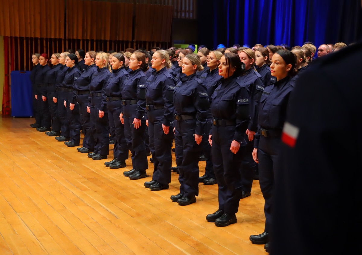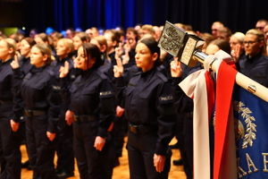 Najbardziej podniosłym momentem było ślubowanie nowo przyjętych adeptów policyjnego rzemiosła. Rotę przysięgi wypowiedziało 101 policjantów, w tym aż 50 kobiet. - „To tylko chwila, lecz niezwykle podniosła. Od niej rozpoczyna się Wasza droga zawodowa, która - mamy nadzieję - będzie pełna sukcesów i poczucia dobrze pełnionej służby” - wybrzmiało podczas uroczystości.