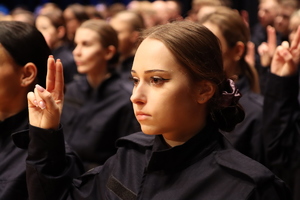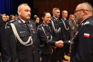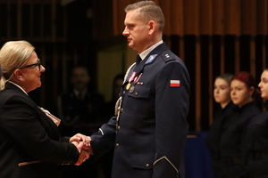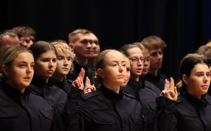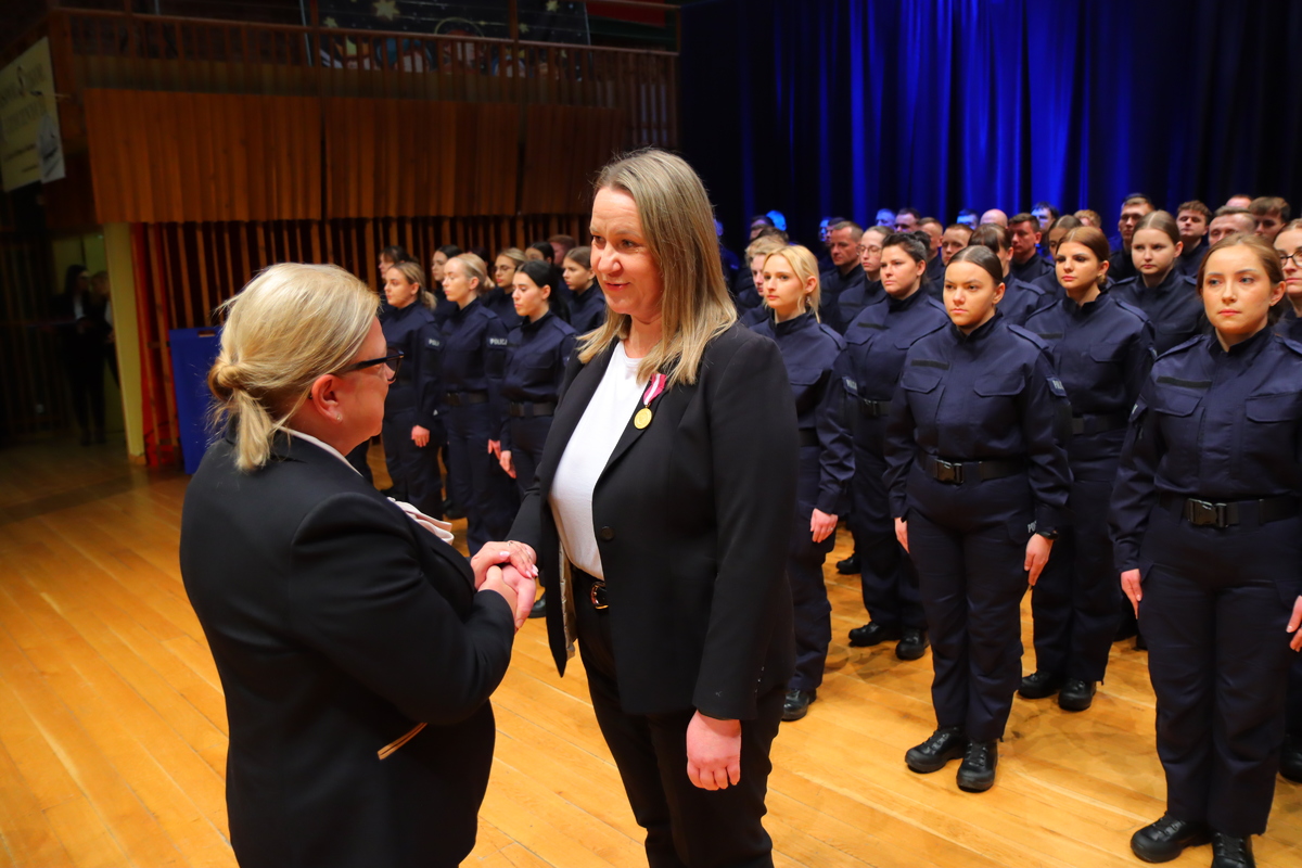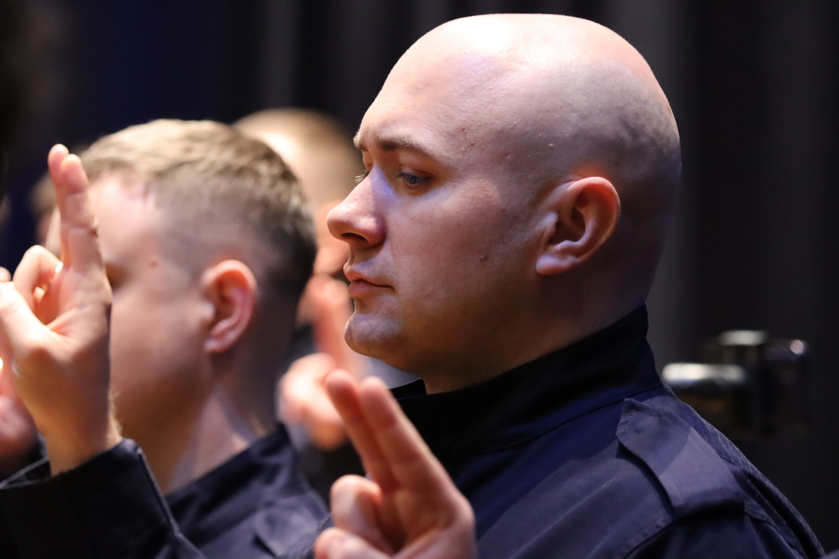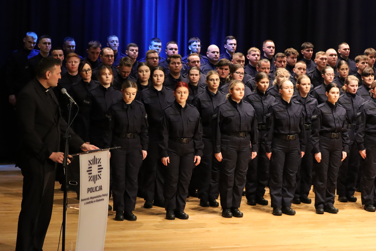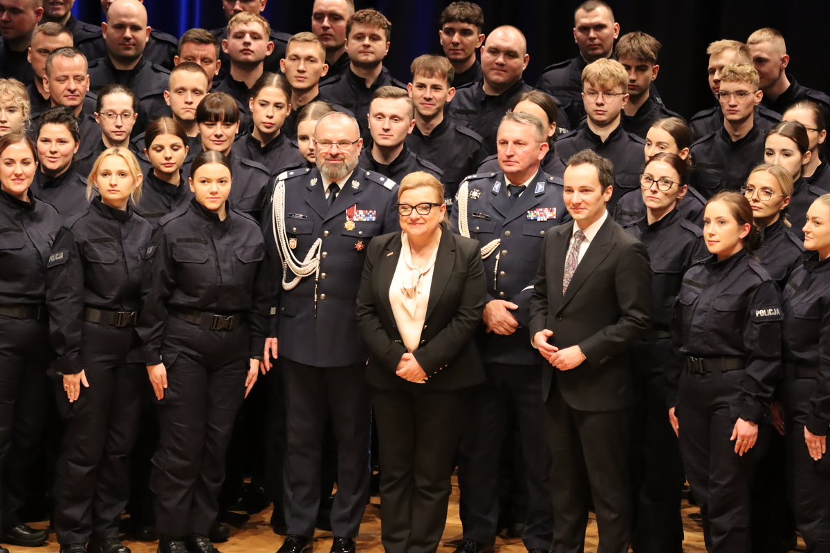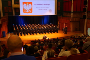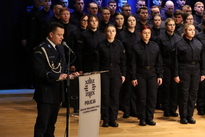 Najbardziej podniosłym momentem było ślubowanie nowo przyjętych adeptów policyjnego rzemiosła. Rotę przysięgi wypowiedziało 101 policjantów, w tym aż 50 kobiet. - „To tylko chwila, lecz niezwykle podniosła. Od niej rozpoczyna się Wasza droga zawodowa, która - mamy nadzieję - będzie pełna sukcesów i poczucia dobrze pełnionej służby” - wybrzmiało podczas uroczystości.