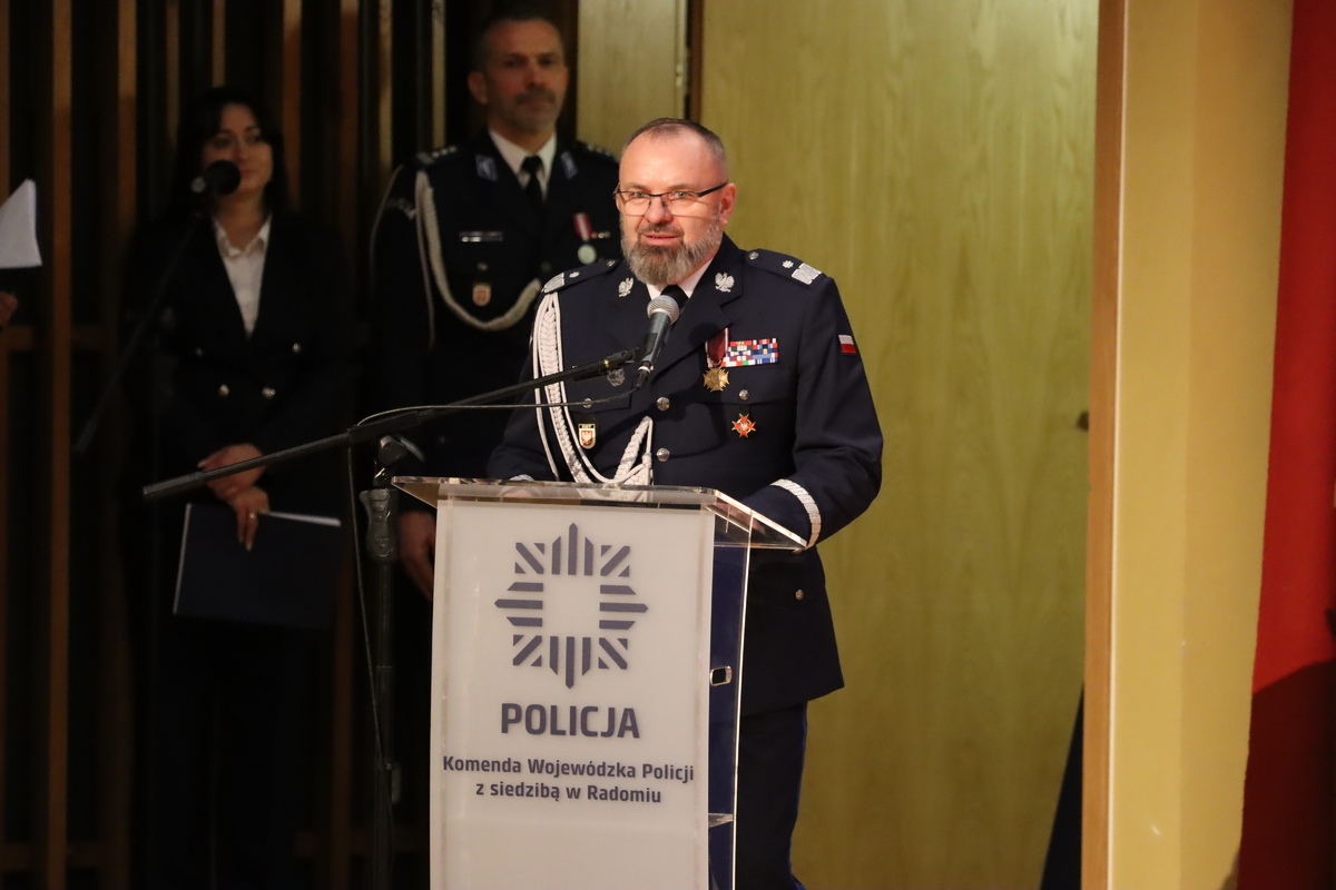 Nadinsp. Waldemar Wołowiec Komendant Wojewódzki Policji zs. w Radomiu zwrócił się do odznaczonych i wyróżnionych policjantów i pracowników Policji mówiąc, że to dzięki ich pracy garnizon mazowiecki jest bardzo dobrze oceniany, a społeczeństwo czuje się bezpiecznie.