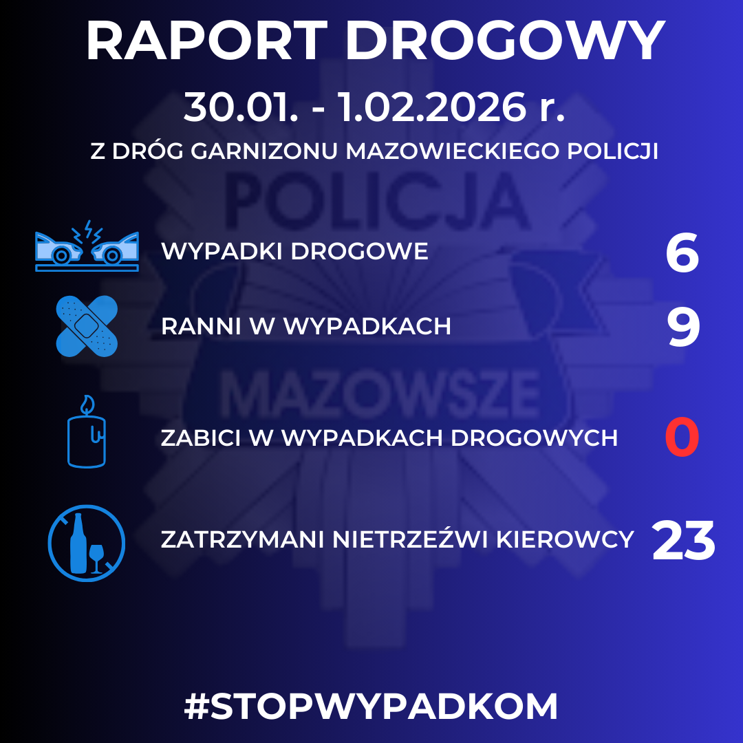 W weekend doszło także do dwóch potrąceń pieszych. Najpoważniejsze z nich miało miejsce w Wyszkowie. O tym zdarzeniu informowaliśmy szerzej tutaj – pieszy został potrącony na oznakowanym przejściu, a siła uderzenia spowodowała poważne obrażenia. Policjanci wyjaśniają okoliczności tego wypadku, a zgromadzony materiał dowodowy posłuży do ustalenia odpowiedzialności uczestników.