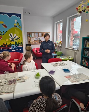 Pod hasłem „Kręci mnie bezpieczeństwo w zimie” funkcjonariuszka Komendy Powiatowej Policji w Szydłowcu spotkała się z uczestnikami warsztatów pn. „Bibliotwórnia”