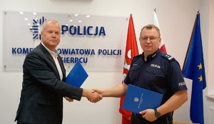 I Zastępca Komendanta Powiatowego Policji w Sierpcu mł. insp. Marcin Ostrowski oraz Dyrektor Zespołu Szkół nr.1 im. gen. Jose`de San Martin w Sierpcu Piotr Tyndorf podpisali porozumienie, dotyczące realizacji zajęć przygotowujących młodzież do podjęcia służby w Policji, zgodnie z programem szkolenia oddziału o profilu mundurowym.