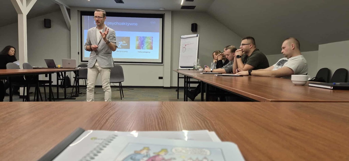 Uczestnicy wzięli udział zarówno w wykładach teoretycznych, jak i w warsztatach praktycznych, które pozwoliły im pogłębić wiedzę oraz przećwiczyć realne scenariusze związane z kontrolą drogową i rozpoznawaniem symptomów uzależnień. Szkolenie poprowadzili Michał Zagłoba oraz Monika Bakalarska – doświadczeni specjaliści w tej dziedzinie. Ich profesjonalizm, fachowa wiedza oraz zaangażowanie sprawiły, że tegoroczne zajęcia były wyjątkowo wartościowe i wysoko ocenione przez uczestników.