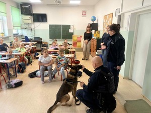 Podczas zajęć uczniowie dowiedzieli się, jak wygląda codzienna służba policjantów, poznali ich umundurowanie wykorzystywane podczas działań w trudnych warunkach oraz zasady bezpiecznego zachowania w różnych sytuacjach. Dzieci z ogromnym zainteresowaniem słuchały opowieści o pracy przewodników psów i ich czworonożnych partnerach – Rico i Larze, którzy specjalizują się w rozpoznawaniu materiałów wybuchowych oraz substancji zakazanych.