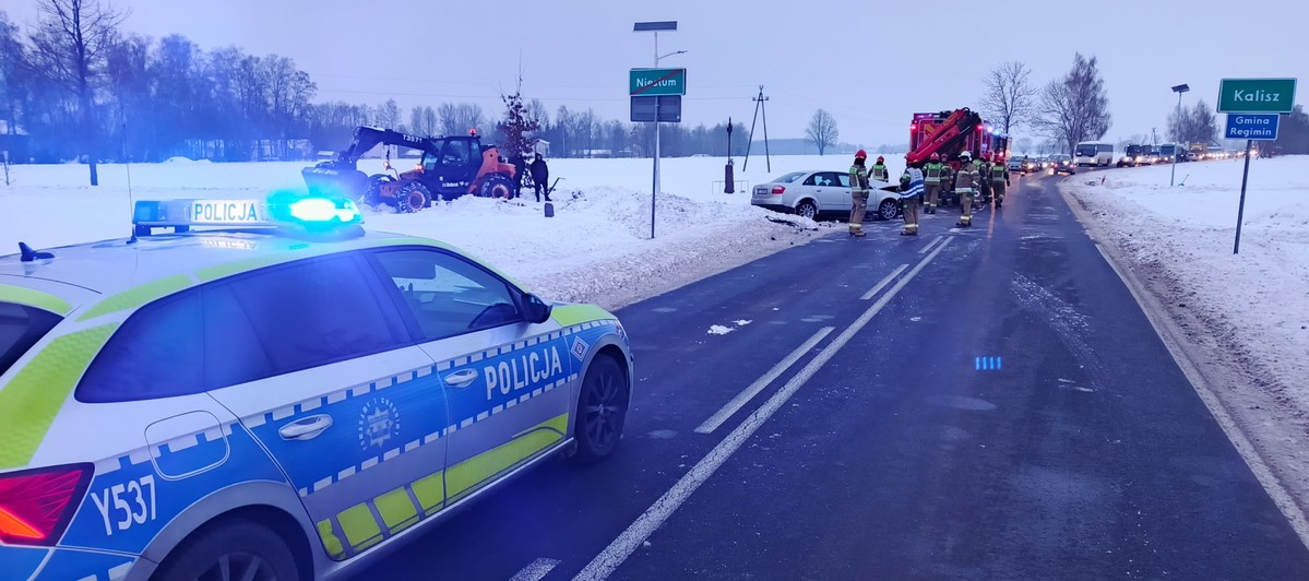 W piątek (16.01.) w miejscowości Kalisz doszło do zdarzenia drogowego z udziałem samochodu osobowego marki Audi oraz koparko-ładowarki. Do wypadku doszło na drodze wojewódzkiej nr 616. W wyniku zdarzenia 65-letnia pasażerka audi została ranna.