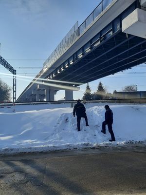 W ramach działań prewencyjnych „Aktywna Tarcza” dzielnicowi z Komendy Powiatowej Policji w Ciechanowie wspólnie z funkcjonariuszami Straży Ochrony Kolei prowadzą kontrole rejonów kolejowych, w tym terenów przyległych do dworca oraz miejsc szczególnie narażonych na przebywanie osób w kryzysie bezdomności.