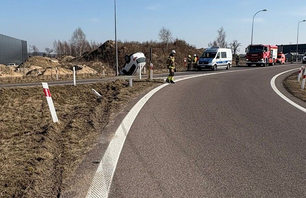 Na zjeździe z trasy S17 w Garwolinie dachował samochód prowadzony przez 19‑latka. Jedna osoba trafiła do szpitala, a policja apeluje o ostrożność — wiosenne warunki na drogach wciąż są zdradliwe.