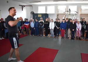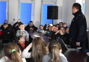 Nie zabrakło również spotkania z psem służbowym, który od razu wzbudzał sympatię. Całość wizyty dopełnił blok profilaktyczny. Policjanci rozmawiali z młodzieżą o bezpieczeństwie, o odpowiedzialności, o ryzykach, które często są bagatelizowane i o tym, jak unikać sytuacji, które mogą prowadzić do zagrożeń. To właśnie te elementy - rozmowa i uświadamianie, stanowią sedno takich spotkań.