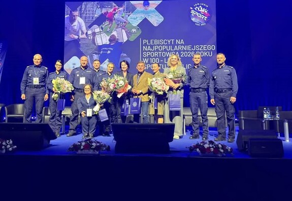 Wyróżnienie Justyny Kozdryk podczas kieleckich targów POLSECURE26 na konferencji „100 lat sportu w Policji”.