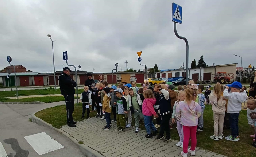 Dzieci z Przedszkola Samorządowego w Nowym Mieście nad Pilicą miały wyjątkową okazję poznać w praktyce podstawowe zasady ruchu drogowego. Instruktorem właściwych zachowań był dzielnicowy sierż. szt. Grzegorz Gawryś, który pokazywał jak prawidłowo przechodzić przez jezdnię, opowiadał o znakach drogowych i potrzebie noszenia odblasków.