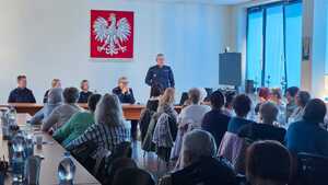 Podczas spotkania Zastępca Komendanta Powiatowego Policji w Grójcu, nadkomisarz Sylwester Kucharczyk, omówił formy przemocy domowej, zwracając uwagę na konieczność reagowania oraz możliwości uzyskania pomocy. Podkreślił, że każda forma przemocy – fizyczna, psychiczna czy ekonomiczna – jest przestępstwem i nie powinna być bagatelizowana. Komendant poruszył również temat wyłudzania środków pieniężnych.