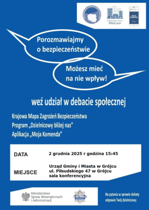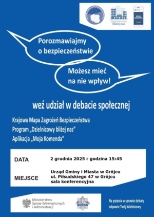 Komendant Powiatowy Policji w Grójcu serdecznie zaprasza na debatę społeczną poświęconą problemowi uzależnień dzieci i młodzieży od używek oraz uzależnień behawioralnych. Serdecznie zapraszamy do udziału w debacie!