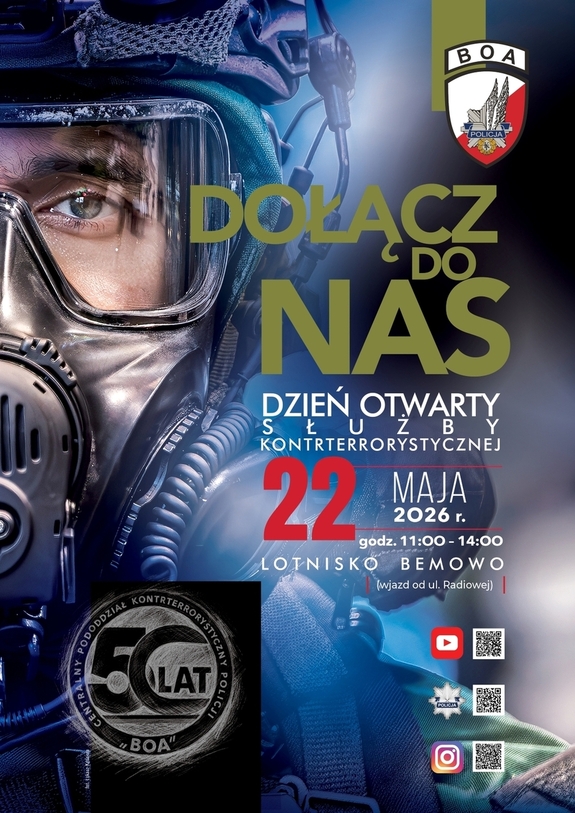 Myślisz o służbie w pododdziale kontrterrorystycznym Policji? Chciałbyś przekonać się, jak wygląda codzienność operatorów i zobaczyć z bliska ich pracę oraz sprzęt, którym posługują się podczas akcji? Masz ku temu wyjątkową okazję. Już 22 maja zapraszamy na IV edycję Dnia Otwartego Służby Kontrterrorystycznej organizowaną przez CPKP "BOA". Wydarzenie odbędzie się na terenie warszawskiego lotniska na Bemowie i pozwoli zajrzeć za kulisy tej służby.