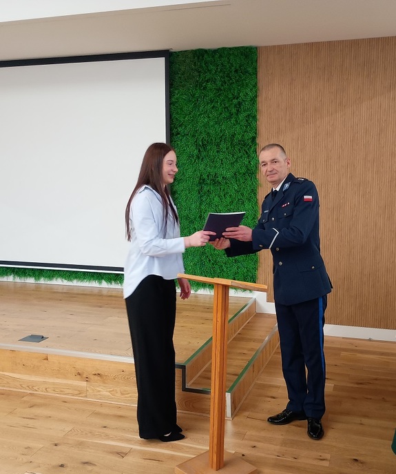 I Zastępca Komendanta Powiatowego Policji w Gostyninie na zakończeniu roku szkolnego w GCE oraz I LO PUL w Płocku