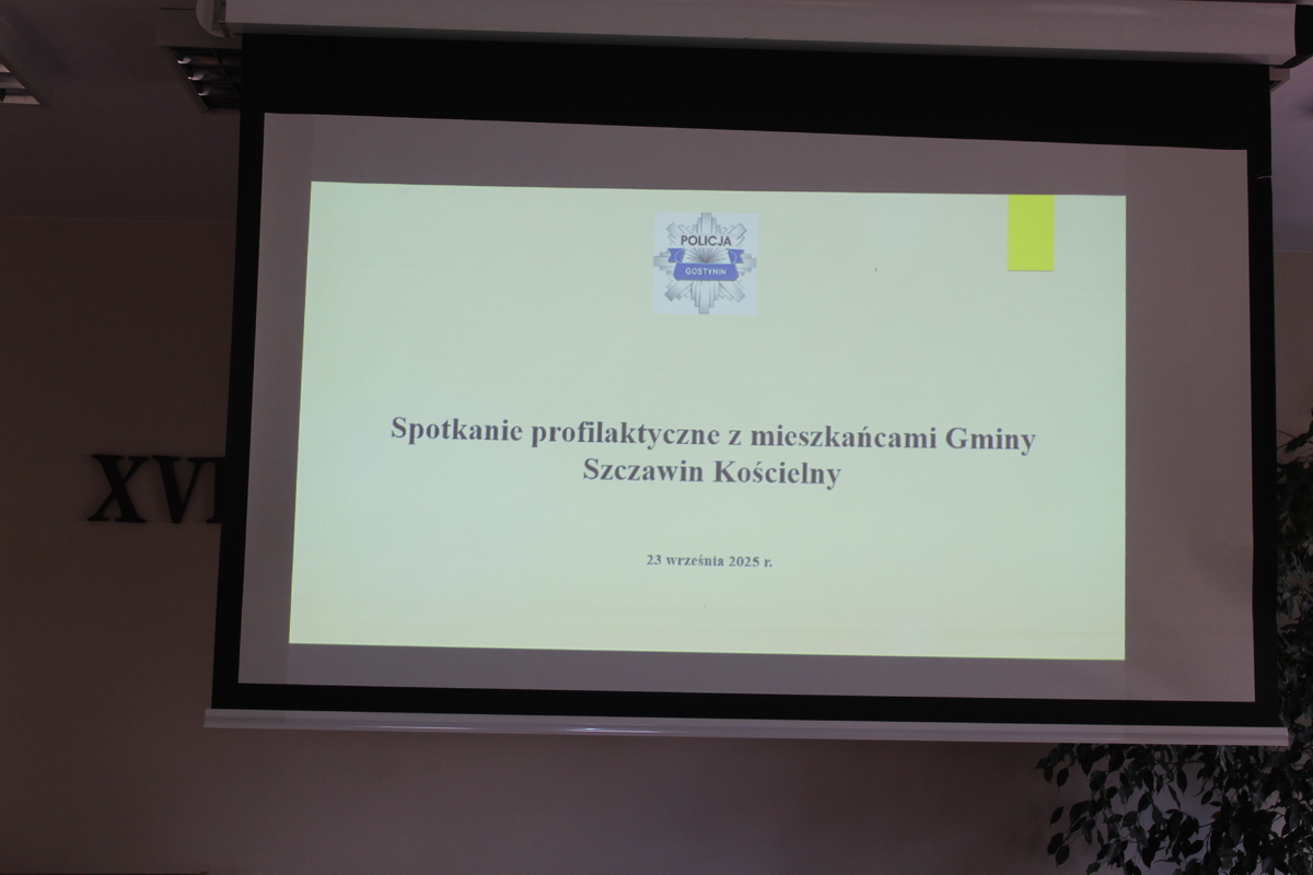 24 września 2025 roku policjanci z Komendy Powiatowej Policji w Gostyninie spotkali się z seniorami w Klubie Seniora przy Gminnym Ośrodku Kultury w Szczawinie Kościelnym. Spotkanie zostało zorganizowane na prośbę Pani Wójt Barbary Stępniak i podyktowane troską o bezpieczeństwo mieszkańców gminy w świecie internetu oraz w codziennym życiu.