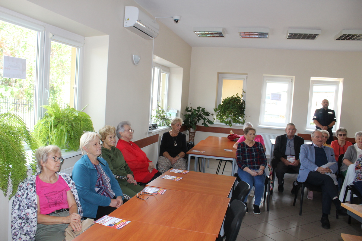 Seniorzy otrzymali również praktyczne wskazówki dotyczące zasad bezpiecznych zakupów w internecie, a także zostali zachęceni do korzystania z nowoczesnych narzędzi wspierających kontakt ze służbami – aplikacji Moja Komenda oraz Krajowej Mapy Zagrożeń Bezpieczeństwa.