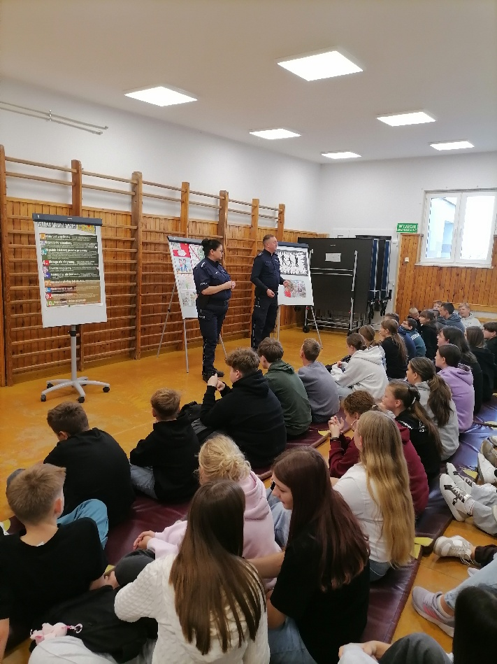Policjanci podkreślili, jak ważne jest reagowanie na wszelkie przejawy agresji oraz gdzie i w jaki sposób można szukać pomocy w sytuacjach zagrożenia. Uczniowie chętnie włączali się w dyskusję, dzieląc się swoimi spostrzeżeniami i doświadczeniami.