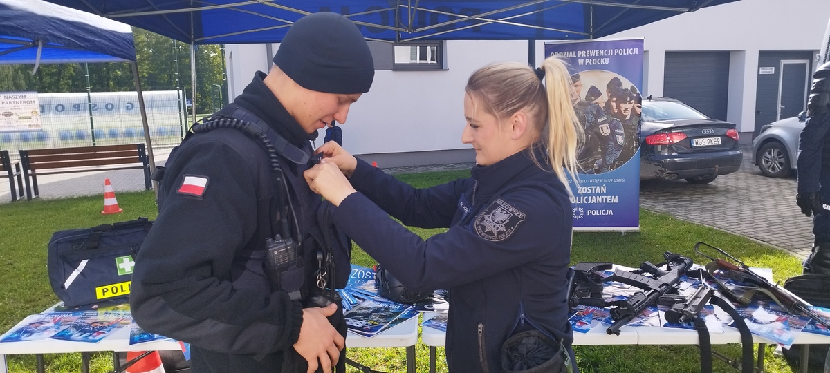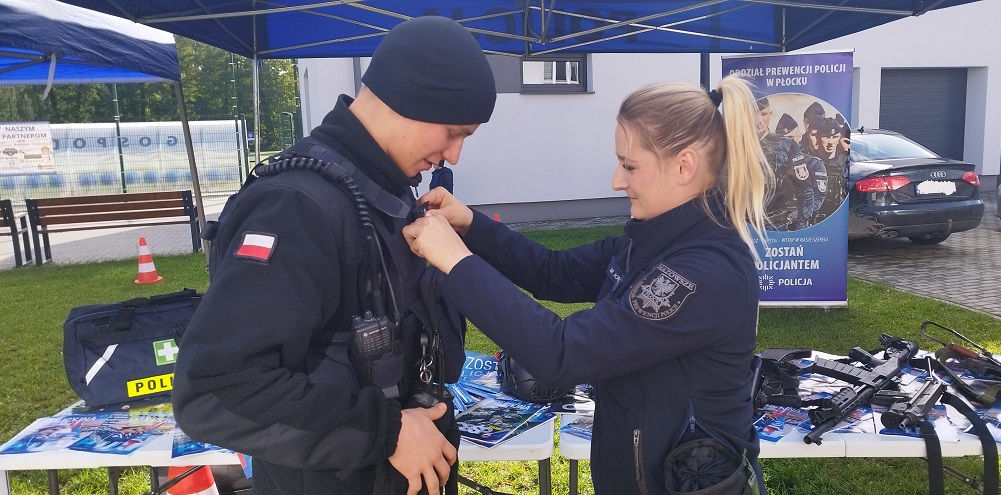 Dużym zainteresowaniem cieszyło się stanowisko przygotowane przez policjantów z Oddziałów Prewencji Policji w Płocku, na którym zaprezentowano sprzęt oraz broń wykorzystywaną w codziennej służbie. Działania policjantów wsparli uczniowie z Oddziału Przygotowania Wojskowego z Gostynińskiego Centrum Edukacyjnego, którzy pomagali w obsłudze policyjnych stoisk i chętnie dzielili się wiedzą o służbie mundurowej.