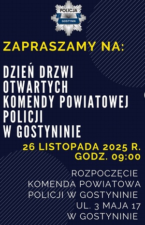 Zaproszenie na „Dzień Drzwi Otwartych Komendy Powiatowej Policji w Gostyninie”