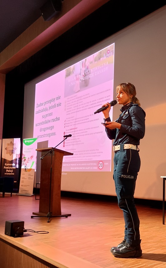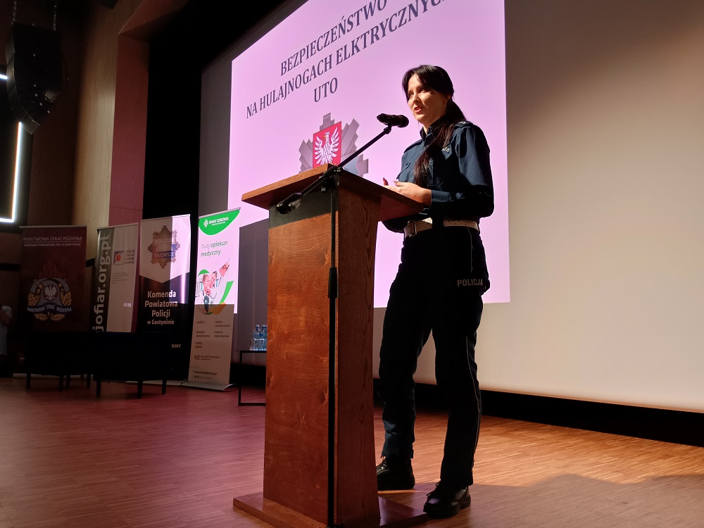 Policjanci o bezpieczeństwie użytkowników urządzeń transportu osobistego (UTO) i hulajnóg elektrycznych podczas konferencji w Gostyninie