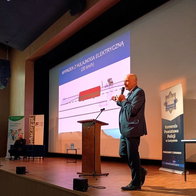 Podczas konferencji przedstawiono także obowiązujące przepisy prawa, w tym zasady poruszania się UTO i hulajnóg elektrycznych, wymagane uprawnienia, dopuszczalne miejsca poruszania się po drogach i chodnikach, ograniczenia prędkości oraz konsekwencje prawne grożące za naruszenie przepisów.