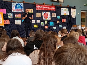 Policjanci na Szkolnym Dniu Przeciw Agresji i Przemocy w Pacynie
