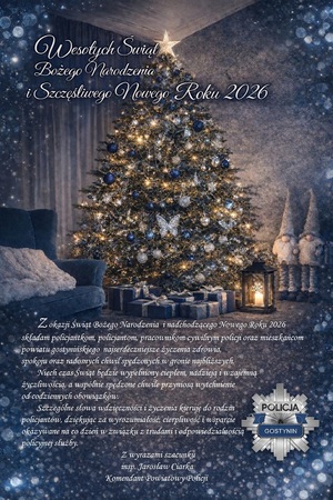 Z okazji Świąt Bożego Narodzenia i Nowego Roku - życzenia Komendanta Powiatowego Policji w Gostyninie Dodano: 23.12.2025