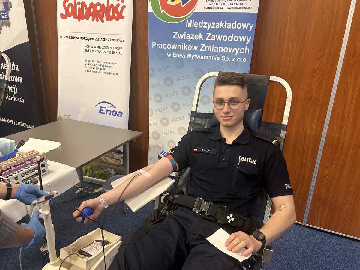 Funkcjonariusze Komendy Powiatowej Policji w Kozienicach przyłączyli się do akcji krwiodawstwa zorganizowanej w Elektrowni Kozienice w ramach programu „Energię mamy we krwi” prowadzonego przez Grupę Enea. Wspólnie z pracownikami elektrowni oddali bezcenny dar życia, pokazując, że pomoc innym mają naprawdę we krwi.