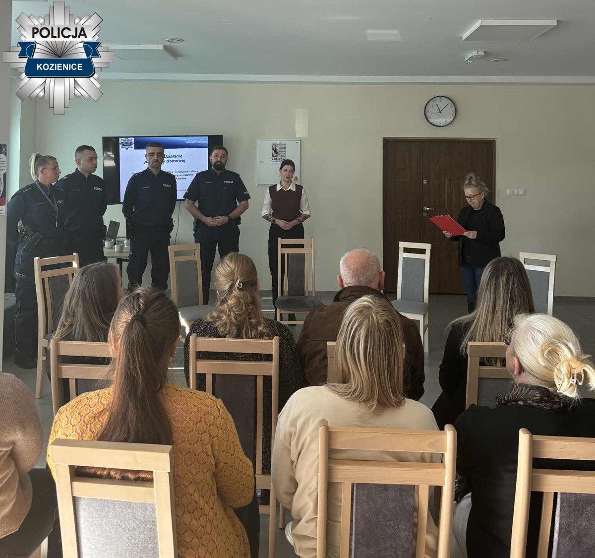 W warsztatach wzięli również udział policjanci z Komendy Powiatowej Policji w Kozienicach oraz dzielnicowi z Komisariatu Policji w Grabowie nad Pilicą. Swoją wiedzą i doświadczeniem podzielił się również psycholog oraz pracownicy Miejsko-Gminnego Ośrodka Pomocy Społecznej w Głowaczowie. Uczestnicy mieli okazję obejrzeć prezentację dotyczącą różnych aspektów przemocy domowej, a następnie wziąć udział w dyskusji, w której mogli zadawać pytania i dzielić się swoimi refleksjami.