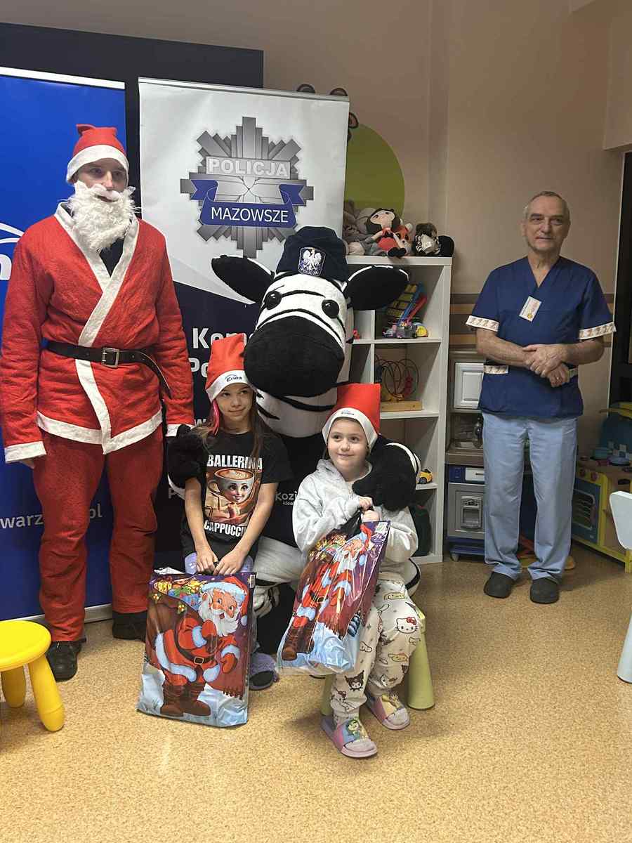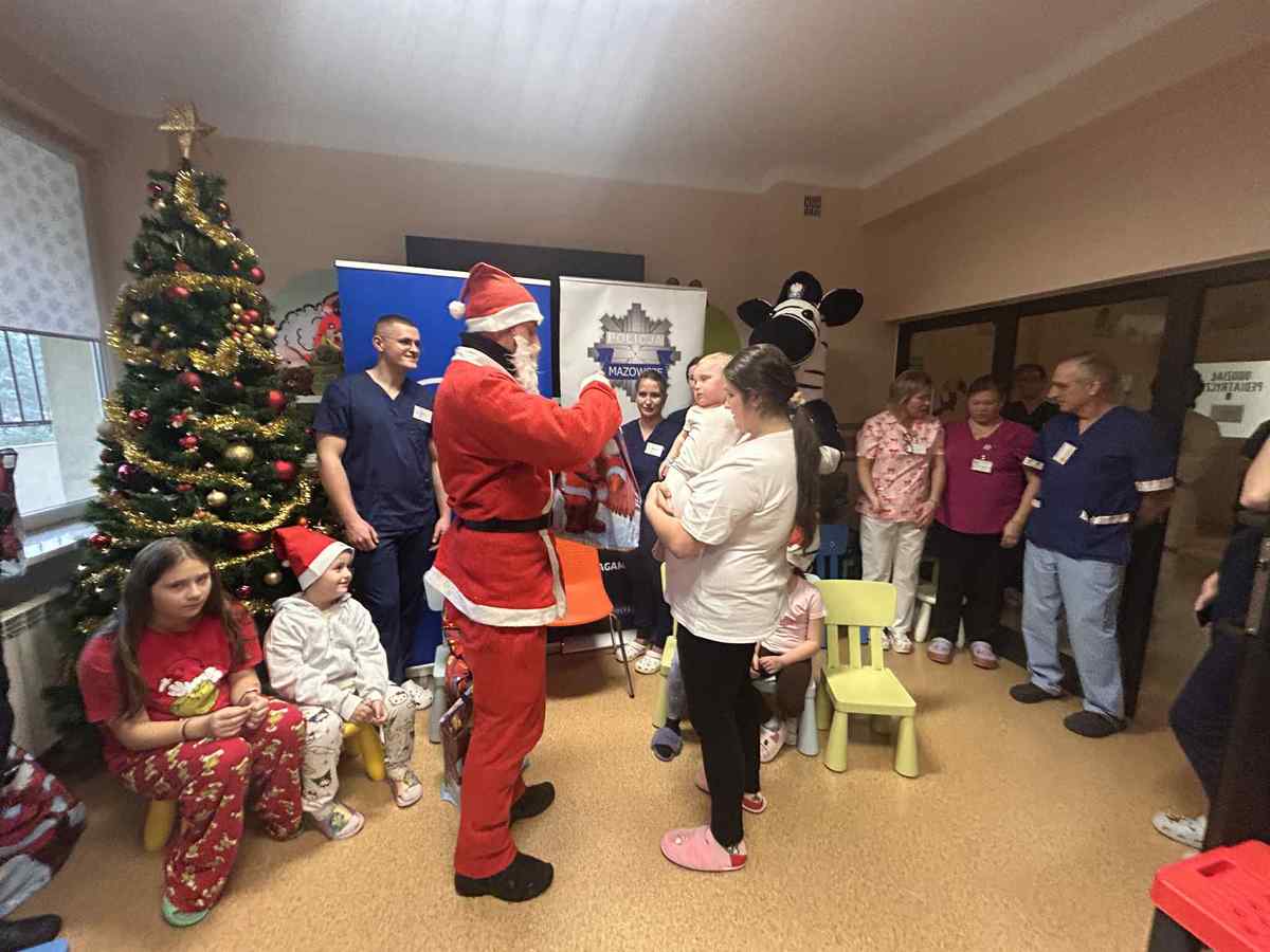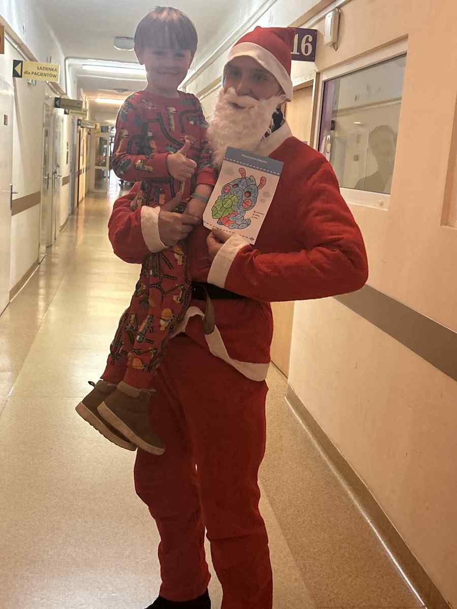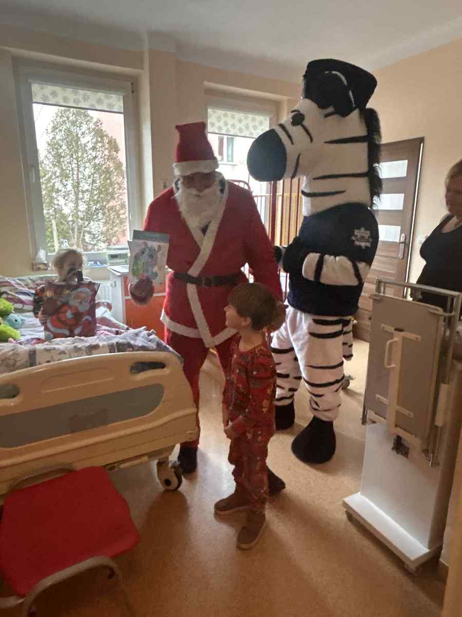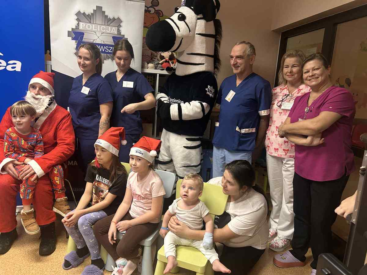 Najmłodszych pacjentów odwiedził wyjątkowy gość – Policyjny Mikołaj, któremu towarzyszyła uwielbiana przez dzieci policyjna maskotka Ziko. Ich wejście na oddział wywołało ogromną radość i uśmiechy na twarzach małych pacjentów. Dzieci z entuzjazmem przywitały Mikołaja, chętnie śpiewały piosenki i recytowały wierszyki, dzieląc się swoją świąteczną energią. Wśród wielu wzruszających momentów znalazł się również ten szczególny, kiedy jeden z milusińskich wręczył Mikołajowi własnoręcznie wykonaną i pokolorowaną laurkę, przygotowaną specjalnie na tę okazję. Ten gest sprawił ogromną radość policjantom i pięknie podkreślił wyjątkowy charakter spotkania.