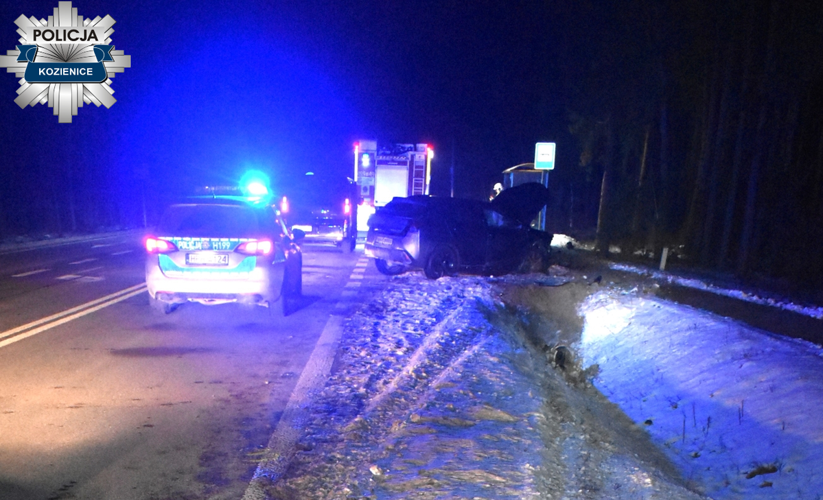 6 stycznia tuż po godzinie 18.00 na drodze krajowej nr 79 za Kozienicami doszło do groźnie wyglądającego zdarzenia drogowego. Interweniowały służby ratunkowe i Policja, a kierujący z obrażeniami ciała trafił do szpitala.