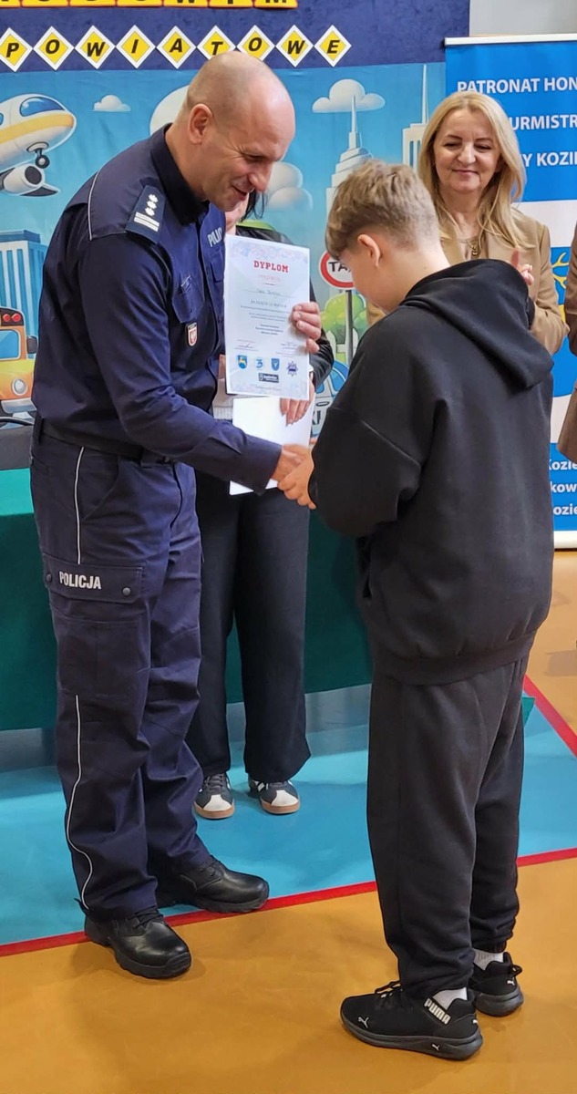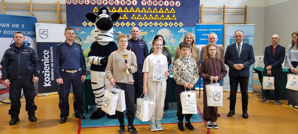 Na zakończenie wydarzenia odbyło się uroczyste wręczenie pucharów, medali, dyplomów oraz nagród dla wszystkich uczestników, połączone z gratulacjami i podziękowaniami za zaangażowanie. Dekoracji laureatów dokonali Starosta Kozienicki Krzysztof Wolski, Zastępca Burmistrza Gminy Kozienice Robert Boryczka, Dyrektor Wydziału Edukacji Urzędu Miejskiego w Kozienicach Małgorzata Wolszczak, Komendant Powiatowy Policji w Kozienicach insp. Wojciech Bednarski oraz Naczelnik Wydziału Ruchu Drogowego nadkom. Andrzej Seredyn. Do zdjęć ze zwycięzcami pozowała również maskotka "Komisarz Ziko", która na co dzień uczy dzieci i młodzież zasad bezpieczeństwa w ruchu drogowym.