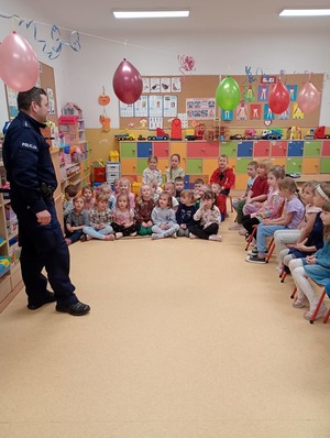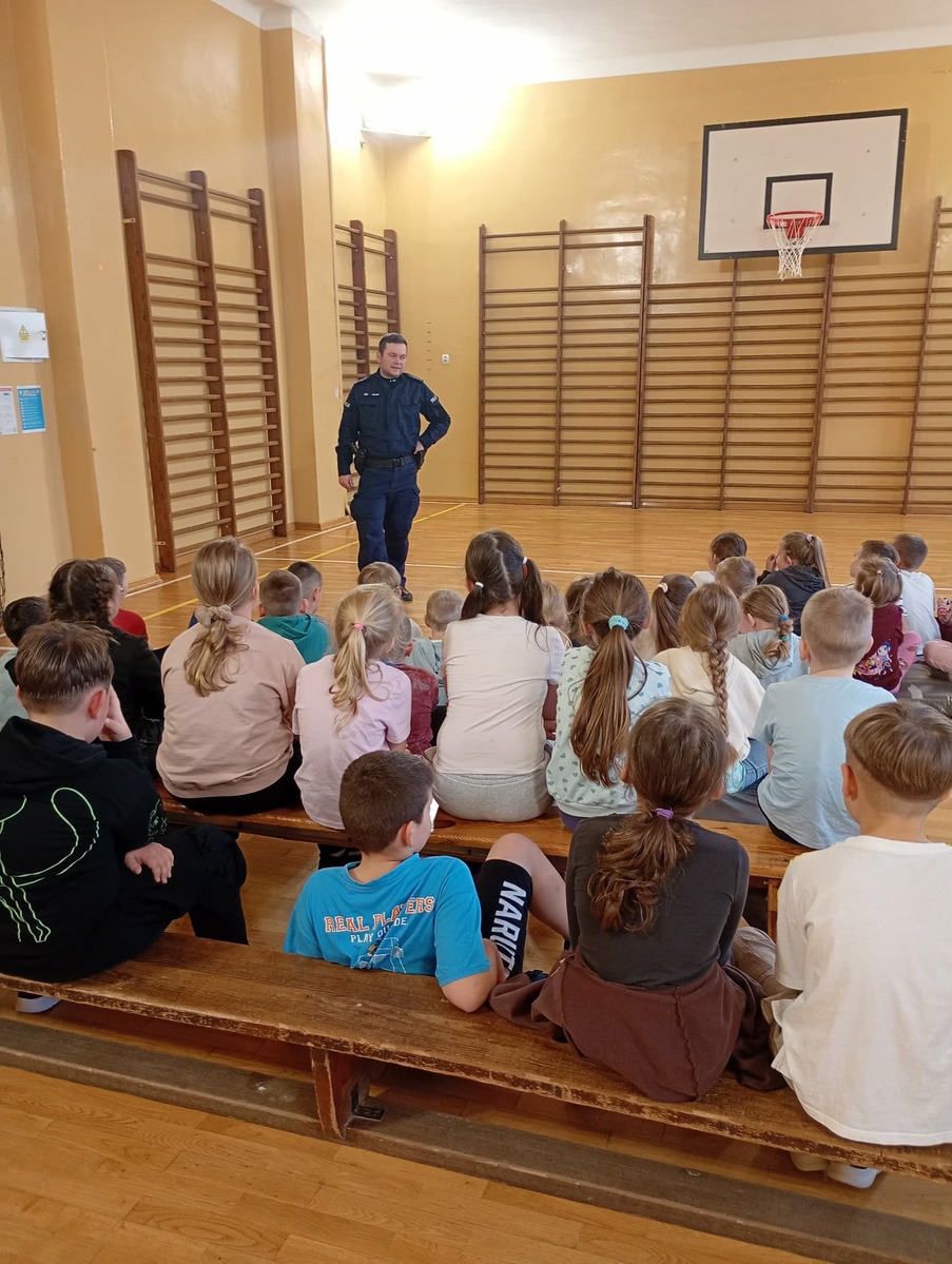 Spotkanie cieszyło się dużym zainteresowaniem najmłodszych, którzy aktywnie uczestniczyli w rozmowie i z uwagą słuchali wskazówek przekazanych przez policjanta. Tego typu inicjatywy sprzyjają kształtowaniu prawidłowych nawyków, uczą odpowiedzialności oraz przyczyniają się do zwiększenia bezpieczeństwa dzieci na co dzień.