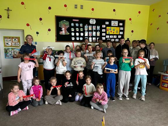 Z okazji przypadającego jutro Ogólnopolskiego Policyjnego Dnia Odblasków funkcjonariuszka zajmująca się profilaktyką społeczną z łosickiej komendy spotkała się dziś z uczniami Szkoły Podstawowej w Mostowie. Celem zajęć było przypomnienie dzieciom i młodzieży, jak ważne jest noszenie elementów odblaskowych i przestrzeganie zasad bezpieczeństwa na drodze.