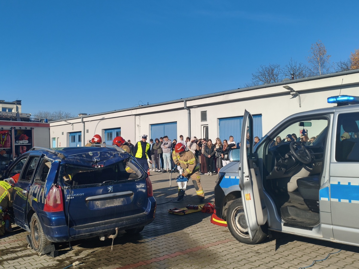 W trakcie wydarzenia funkcjonariusze przedstawili wyposażenie wykorzystywane w codziennej służbie, w tym umundurowanie, środki ochrony osobistej, sprzęt techniczny, policyjne pojazdy służbowe oraz elementy wyposażenia specjalistycznego stosowanego w działaniach prewencyjnych, ruchu drogowego i pionu kryminalnego. Była to rzadko spotykana możliwość bezpośredniego zapoznania się ze specyfiką pracy Policji, obejmującą zarówno działania interwencyjne, patrolowe, jak i czynności dochodzeniowo-śledcze. Funkcjonariusze udzielali szczegółowych informacji, odpowiadali na pytania oraz omawiali procedury i obowiązki wynikające z pełnienia służby. Najważniejszym punktem programu była symulacja wypadku drogowego, przygotowana we współpracy z funkcjonariuszami Państwowej Straży Pożarnej w Łosicach. Zaprezentowano przebieg rzeczywistych działań podejmowanych na miejscu zdarzenia od zabezpieczenia terenu, przez udzielanie pierwszej pomocy i działania ratowniczo-techniczne, po policyjne czynności dochodzeniowo-śledcze. Pokaz ten stanowił praktyczną ilustrację skoordynowanej współpracy służb ratunkowych oraz decyzji podejmowanych w sytuacjach wymagających natychmiastowej reakcji.