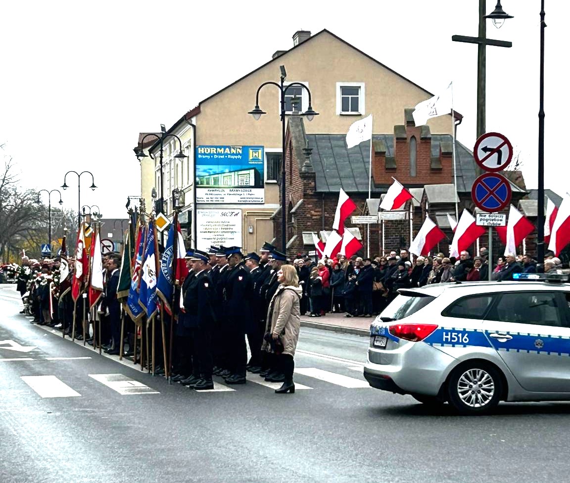 Po nabożeństwie uczestnicy uroczystości, w asyście pocztów sztandarowych, przedstawicieli samorządu, służb mundurowych, szkół i organizacji społecznych, przemaszerowali pod pomnik Marszałka Józefa Piłsudskiego. Tam złożono wieńce i oddano hołd wszystkim, którzy walczyli o wolną i niepodległą Polskę.