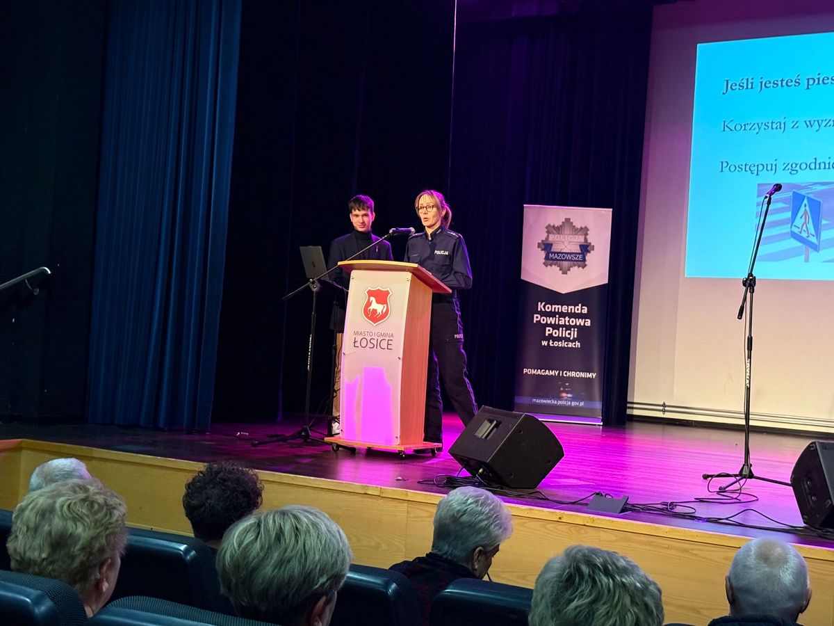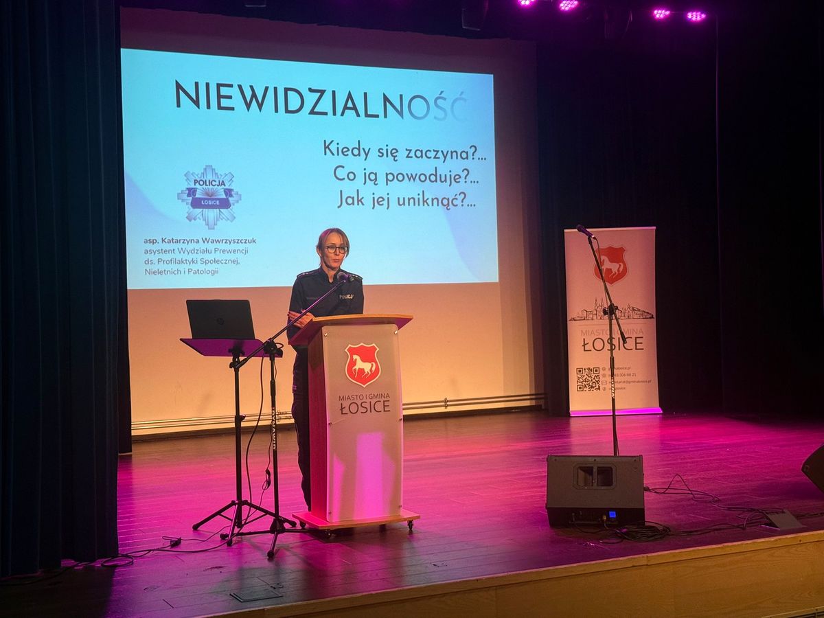 Funkcjonariuszka do spraw profilaktyki aktywnie włączyła się w wydarzenie, kierując do uczestników prelekcję pt. „Bezpieczny Senior Powiatu Łosickiego”. Podczas spotkania poruszono tematykę szeroko pojętego bezpieczeństwa, zarówno w ruchu drogowym, jak i w życiu codziennym czy w świecie cyfrowym.W trakcie prelekcji omówiono zjawisko tzw. „niewidzialności”, które dotyczy zarówno osób starszych, jak i młodych. Podkreślono, że zjawisko to może przejawiać się na kilku płaszczyznach – od słabej widoczności pieszych na drodze, przez niewidoczne sygnały świadczące o kryzysie psychicznym, po osoby doświadczające przemocy domowej, które często pozostają niezauważone przez otoczenie.