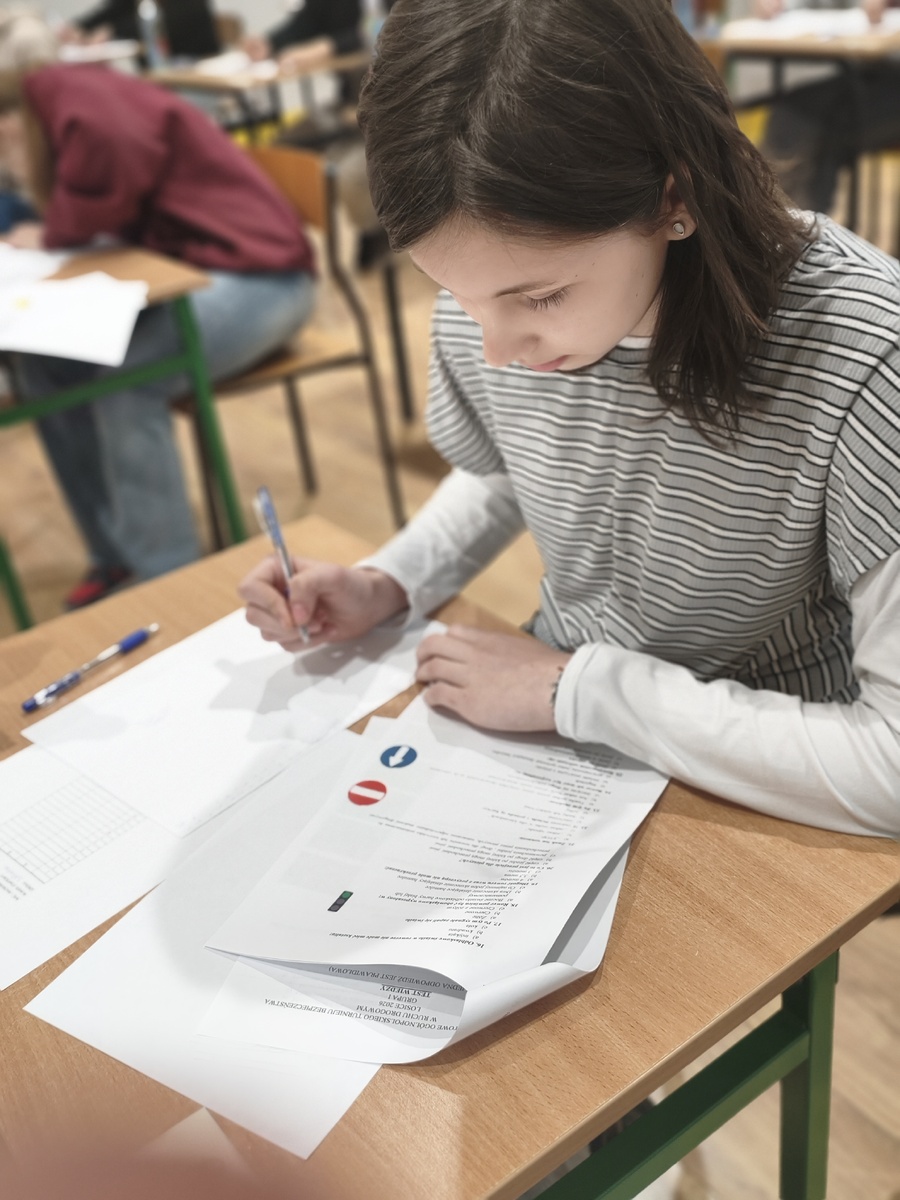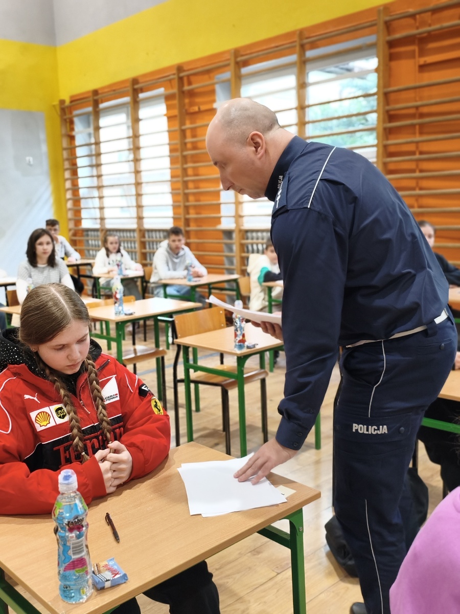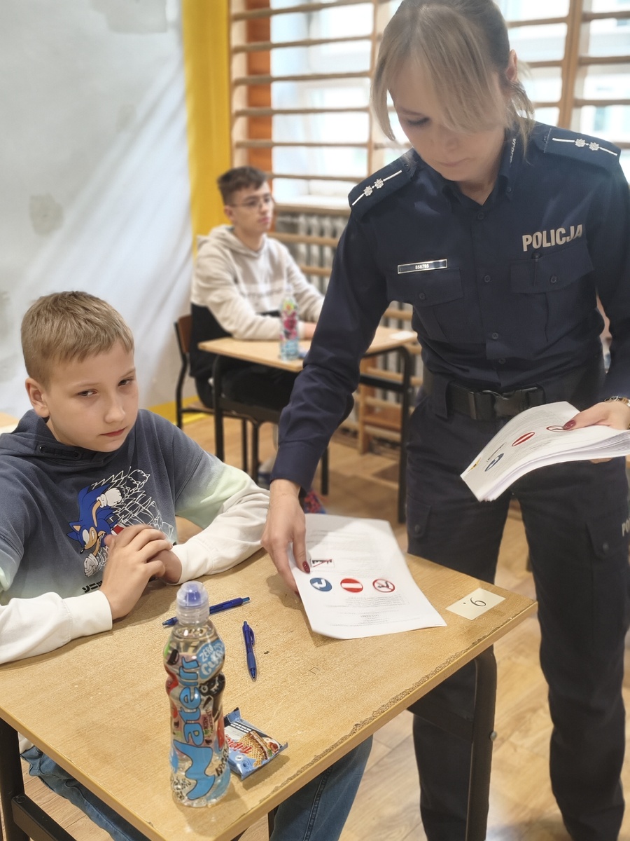 Uczniowie mieli do rozwiązania test, który zawierał 35 pytań związanych z ogólnymi zasadami bezpieczeństwa w ruchu drogowym oraz 10 zagadnień polegających na ustaleniu kolejności przejazdu przez skrzyżowaniu.