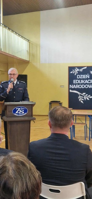 Podczas uroczystości komendant powiatowy w imieniu Komendanta Wojewódzkiego Policji zs. w Radomiu nadinsp. Waldemara Wołowca odczytał list z podziękowaniami i gratulacjami dla dyrektora i nauczycieli z okazji Dania Edukacji Narodowej.
