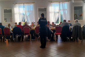 Uczestnicy spotkania otrzymali drobny, ale dość istotny gadżet, służący bezpieczeństwu na drodze- opaski odblaskowe. Policjanci przypomnieli o zasadach bezpieczeństwa pieszych w okresie jesienno- zimowym.