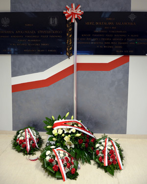 Po ceremonii odsłonięcia i poświęcenia tablicy pamiątkowej, delegacje złożyły wieńce pod tablicami poświęconymi kom. Apoloniuszowi Strzeleckiemu oraz sierż. Bolesławowi Salamonikowi.