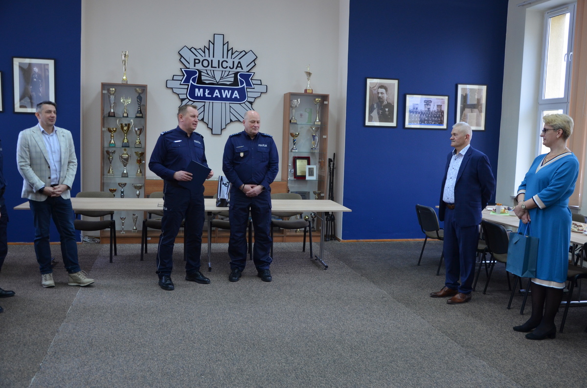 Podczas uroczystego pożegnania podziękowania za wieloletnią służbę i zaangażowanie złożyli Komendant Powiatowy Policji w Mławie mł. insp. Marcin Ostrowski, Zastępca Komendanta Powiatowego nadkom. Robert Górczyński, a także Komendant w stanie spoczynku insp. Tomasz Łysiak. W spotkaniu uczestniczyli również policjanci oraz pracownicy cywilni komendy, którzy wspólnie wyrazili wdzięczność za lata współpracy.
