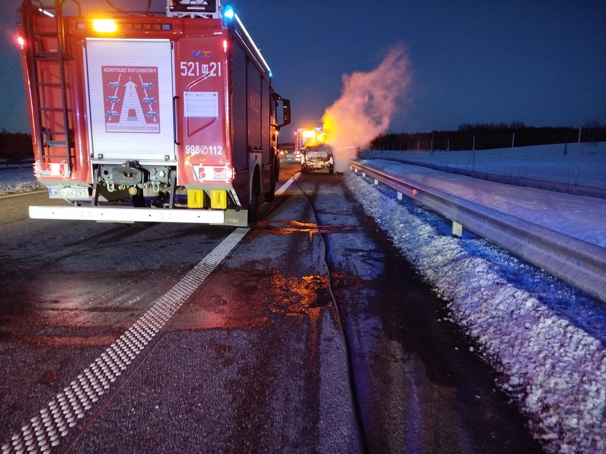 Do niebezpiecznego zdarzenia doszło również na trasie S7 w kierunku Gdańska. Na 79-tym kilometrze drogi zapaliła się Mazda CX-5, którą jechał 57-letni mieszkaniec powiatu ostródzkiego wraz z pasażerką. Podczas jazdy doszło do samozapłonu pojazdu. Dzięki szybkiej reakcji kierowcy auto zatrzymano w bezpiecznym miejscu i wszyscy opuścili je bez obrażeń. Pożar został ugaszony, a pojazd usunięty z drogi.
