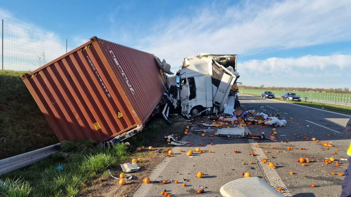Do wypadku doszło tuż po godz. 2 w nocy. Jak wynika ze wstępnych ustaleń policjantów, pracujących na miejscu zdarzenia, oba pojazdy ciężarowe jechały prawym pasem ruchu. Kierujący Dafem 24-letni obywatel Uzbekistanu, uderzył w naczepę jadącego przed nim TIRa. Na skutek uderzenia doszło do deformacji kabiny Dafa i rozerwania ściany grodziowej naczepy a także odpięcia naczepy z kontenerem morskim drugiego z pojazdów, która wywróciła się na bariery ochronne i do rowu. W kabinie Dafa był także pasażer, 25- letni obywatel Kazachstanu. Mężczyzna w stanie ciężkim został przewieziony do szpitala w Ciechanowie, pomimo natychmiastowej akcji ratowniczej, zmarł w szpitalu. Kierowcę, z obrażeniami ciała przewieziono do szpitala w Mławie.