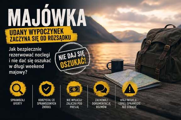 Już tylko dwa dni pozostały do majówki. Wg. prognoz początek maja przywita nas wysokimi temperaturami. To doskonała okazja do wypoczynku poza domem. Rezerwując pobyt warto zachować ostrożność, żeby nie paść ofiarą oszustów.