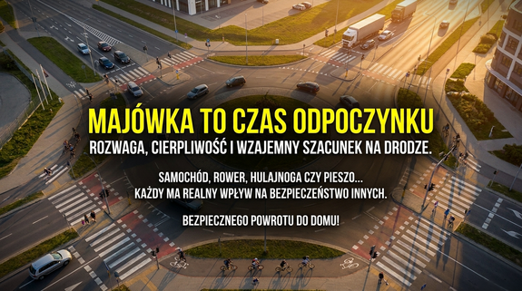 Bezpieczna majówka 2026 - policjanci apelują o rozwagę na drogach i podczas wyjazdów