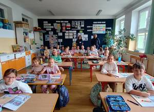"Bezpieczna droga do szkoły" to również spotkania z dziećmi i rozmowy nt. bezpiecznego przechodzenia przez jezdnię, przepisów dot. rowerzystów a także o używaniu odblasków. W tym tygodniu takie zajęcia odbyły się m.in w Jelonkach i Rząśniku Włościańskim. Takie wizyty w szkołach będą kontynuowane przez cały wrzesień.