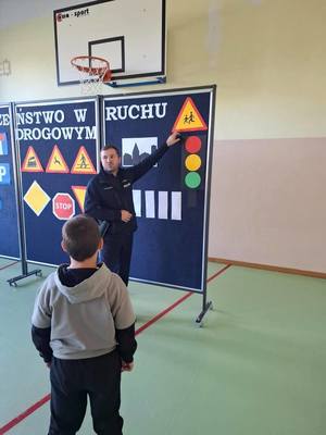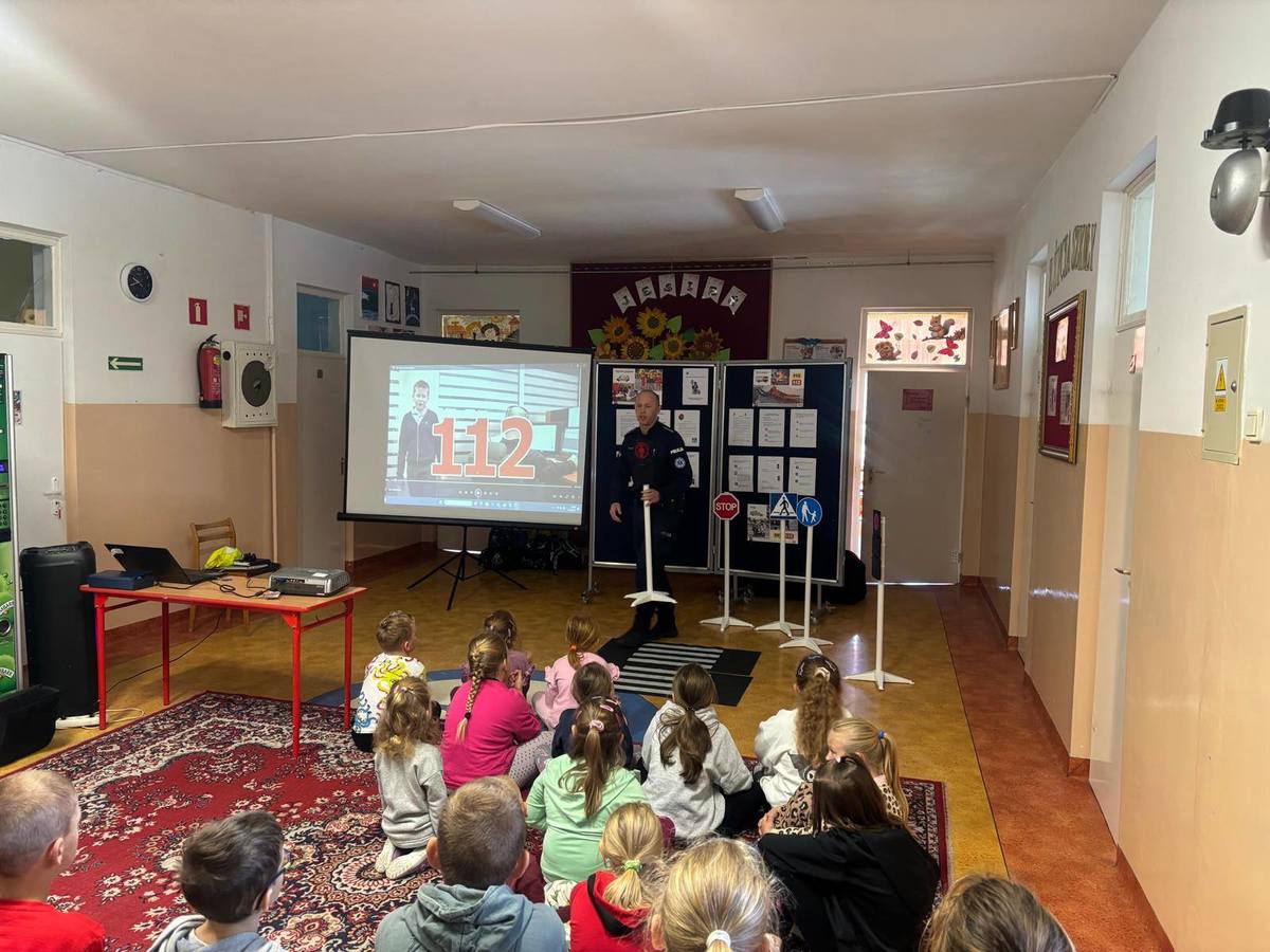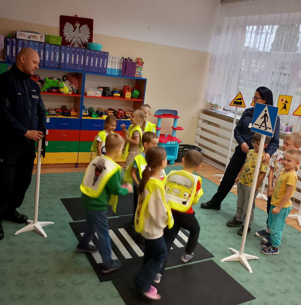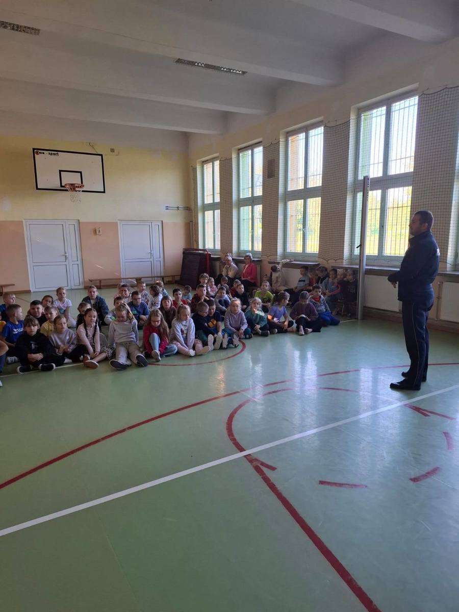 "Bezpieczna droga do szkoły" to akcja którą prowadzimy cyklicznie wraz z rozpoczęciem roku szkolnego. Przez praktycznie cały miesiąc staramy się odwiedzić jak największą liczbę placówek edukacyjnych. Podczas spotkań zarówno z przedszkolakami jak i uczniami szkół podstawowych rozmawiamy o zasadach bezpiecznego przechodzenia przez jezdnię. Poruszamy też ważną kwestię korzystania z nr alarmowego 112 w sytuacjach zagrożenia zdrowia lub życia człowieka. Ze starszymi dziećmi omawialiśmy zasady bezpiecznej jazdy rowerem, który niejednokrotnie wykorzystywany jest przez nich jak środek transportu do szkoły. Z uwagi na rosnącą popularność hulajnóg elektrycznych wśród młodzieży omawialiśmy zasady korzystania z nich. Niestety w przestrzeni publicznej nie brakuje przykładów zdarzeń drogowych z udziałem właśnie tych uczestników ruchu drogowego. Z najmłodszymi uczestnikami ruchu drogowego prowadziliśmy praktyczną naukę bezpiecznego przechodzenia przez jezdnię.